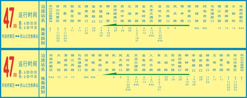 47路:市政府新區(qū)——西山公交換乘站