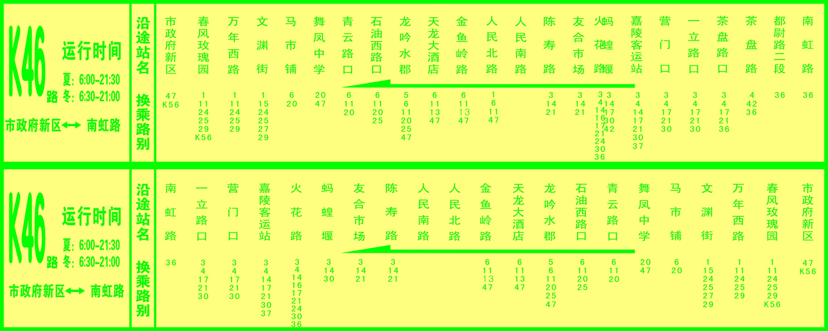 K46路:市政府新區(qū)——嘉陵客運(yùn)站