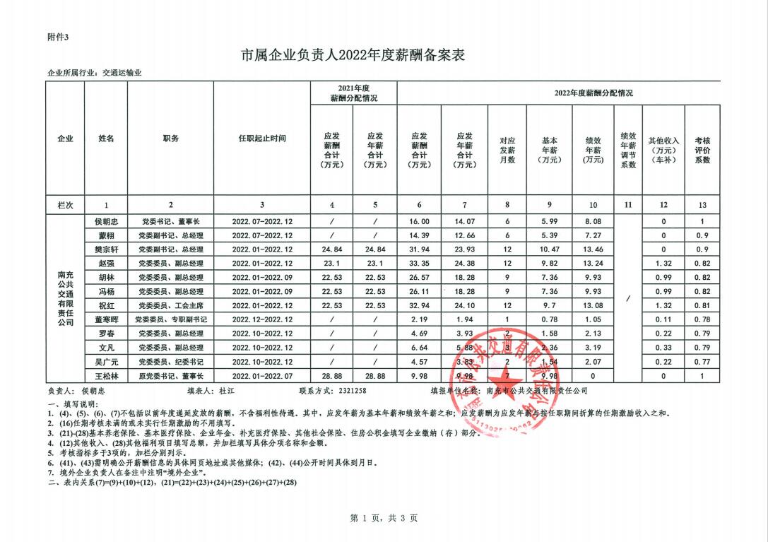 市屬企業(yè)負(fù)責(zé)人2022年度薪酬備案表