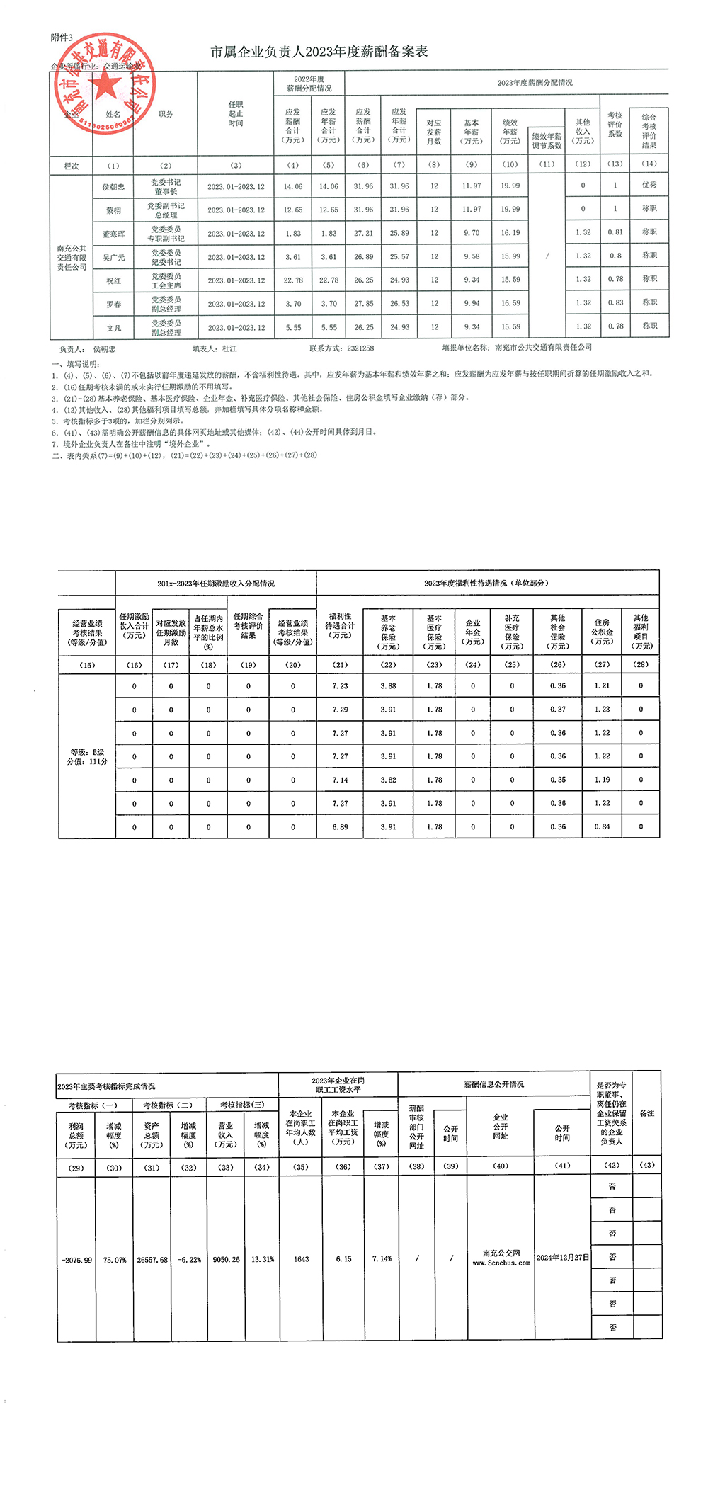 市屬企業(yè)負(fù)責(zé)人2023年度薪酬備案表